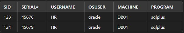 ALTER SYSTEM KILL SESSION 'sid,serial#';