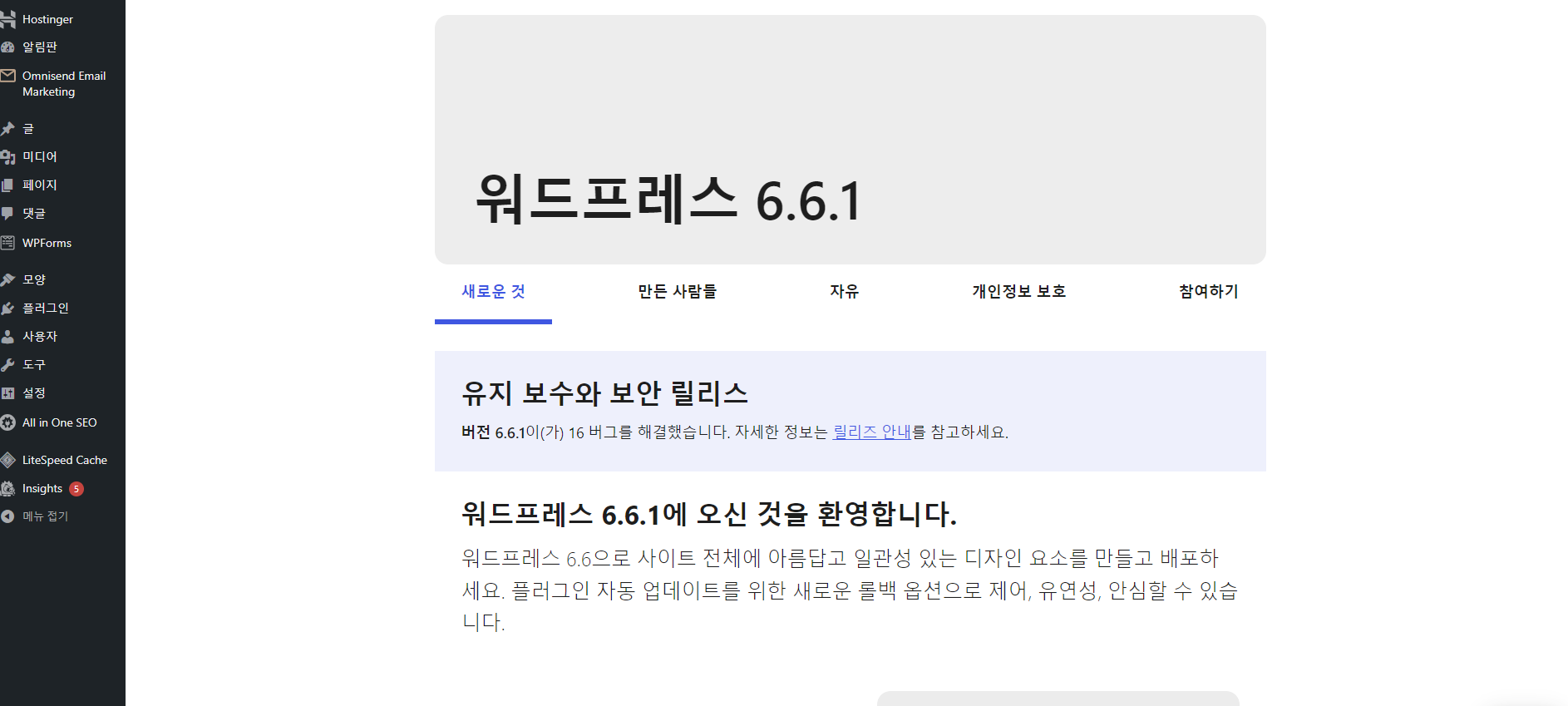 이 페이지에서 사용자설정, 플러그인 설치 등 기본 설정을 바꿔주면 된다.