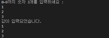 System.out.println("0~9까지 숫자 3개를 입력하세요 : ");
