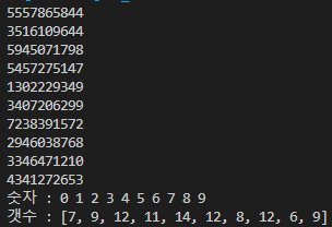 * 갯수 : 10 9 18 11 7 9 15 14 7 5