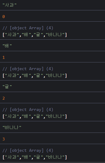 //위 예제를 forEach 문으로 바꾸면 코드가 훨씬 간결해진다