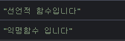 선언적 함수와 익명함수는 실행 순서가 다르다.