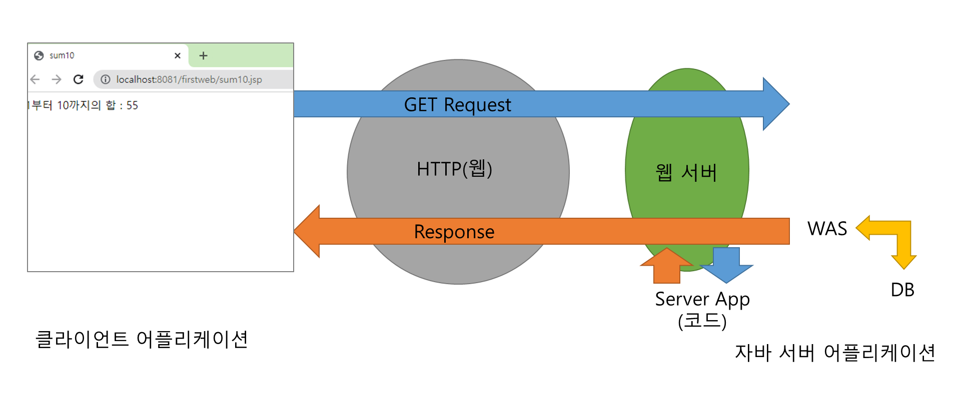 클라이언트가 웹 페이지를 요청하면 서버가 그 요청을 분석하여 응답결과를 HTML 문서로 만들어서 브라우저를 통해 보여준다.