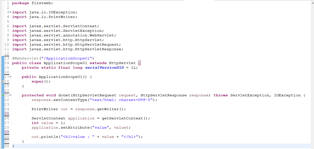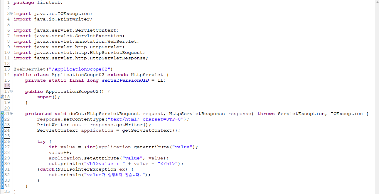 웹 어플리케이션이 시작되고 종료될 때까지 변수를 사용할 수 있다.