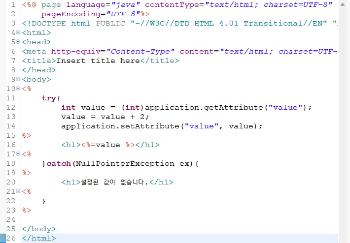- Application : 웹 어플리케이션이 시작되고 종료될 때까지 변수가 유지되는 경우 사용