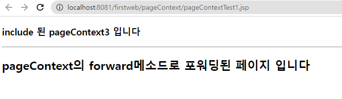 포워딩 방식으로 주소가 pageContextTest1.jsp 가 된다.