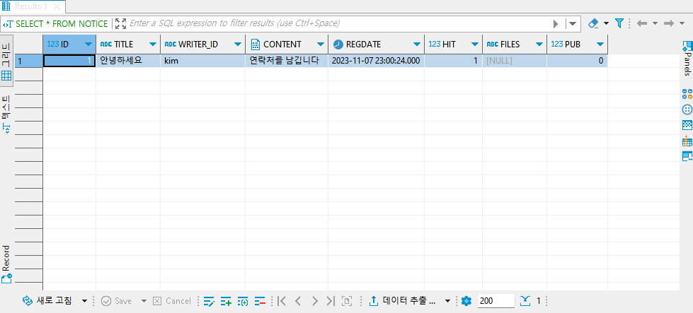 SELECT * FROM NOTICE; 를 했는데