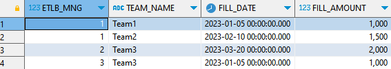 SELECT FILL_DATE, TEAM_NAME FROM TEST2; --날짜, 글자